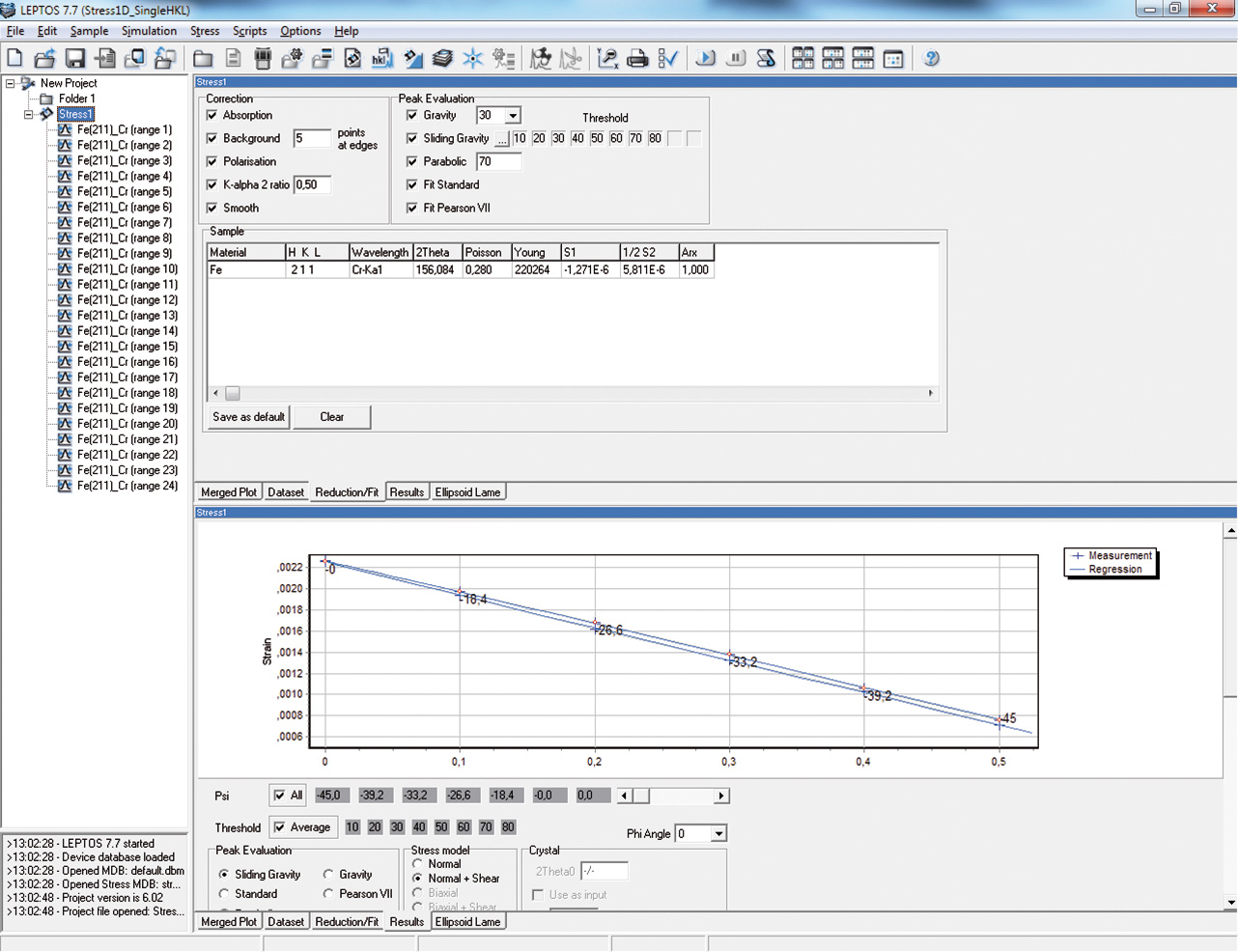 5)在DIFFRAC.LEPTOS中分析鋼部件的殘余應(yīng)力:通過sin2psi方法,使用Cr輻射測量得到。