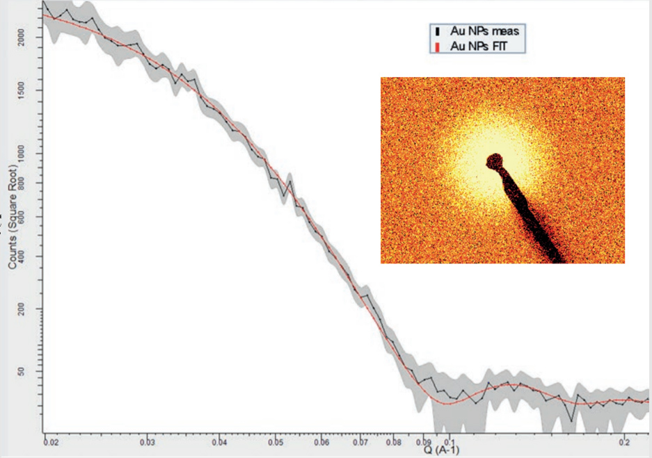7)在DIFFRAC.SAXS中,對EIGER2 R 500K通過2D模式收集的NIST標樣SRM 8011 9 mm金納米顆粒進行粒度分析。